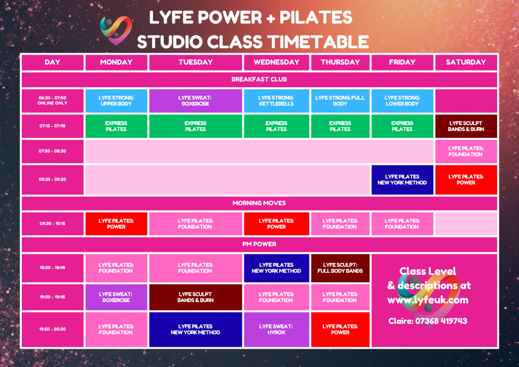 Below is a schedule with booking slots against each class. You can book either in person or online